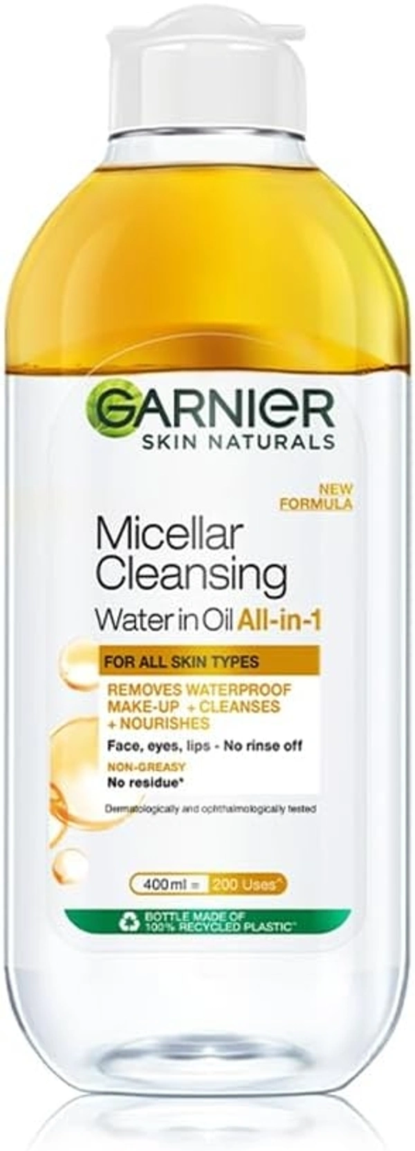 Garnier Skin Naturals, Cleansing Water for Waterproof Makeup, Nourishing Formula, Micellar Oil-Infused Cleansing Water, 400ml