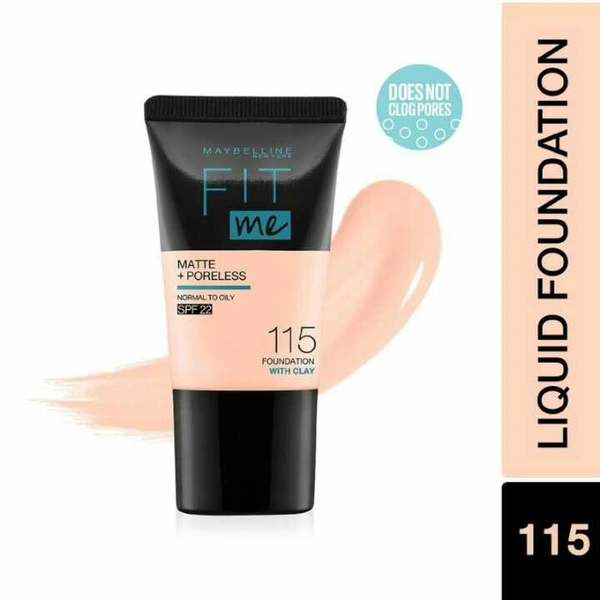 Maybelline New York Fit Me Matte+Poreless Liquid Foundation Tube, 115