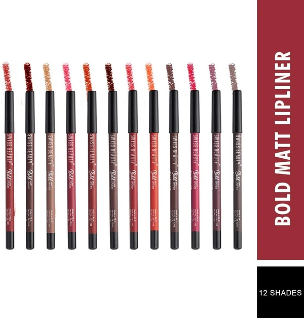 Swiss Beauty Bold Matte Lipliner Pencil, Multi Color, (1.8g * 12) Pack of 12